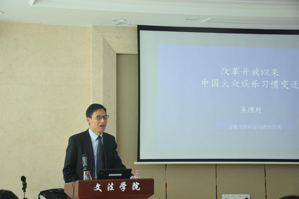 11月14日下午,安徽大学吴理财教授在人文楼M612做客我校狮子山社会学讲坛,作了题为“改革开放以来中国大众娱乐习惯变迁”的学术讲座,本次学术讲座由91黑料
