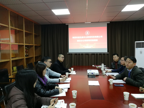 就建设就业基地以及校企合作项目举行洽谈。中公教育湖北研究院院长赵欣、武汉分校校长常进、校学生工作部副部长鄢万春、学院党委副书记张永卓等领导出席洽谈会。中公教育武汉分公司人力资源部经理杨玲、文法院辅导员等参与会议。双方通过互问互答的方式进行深入交流。