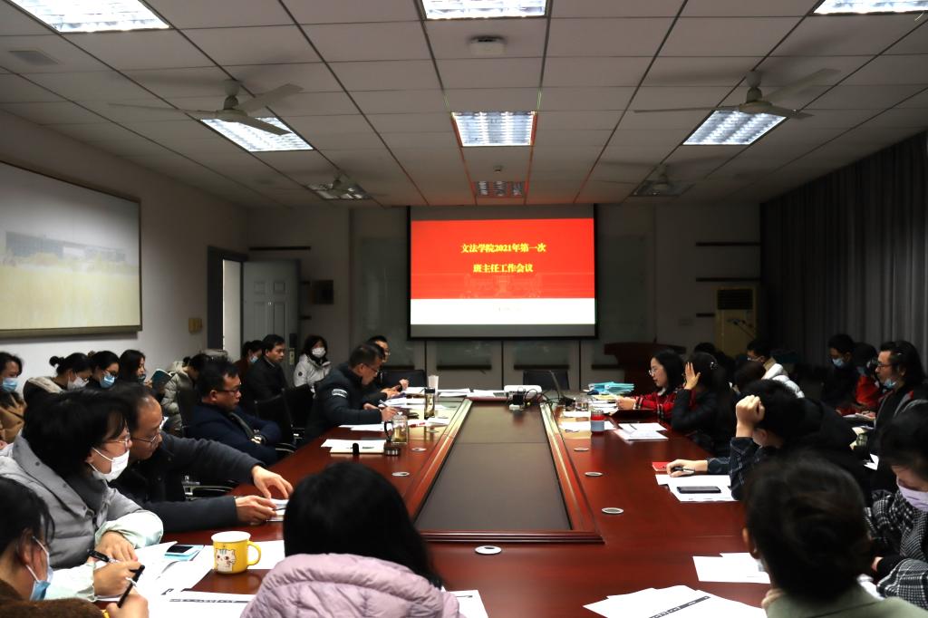 2021年第一次班主任工作会议在人文副楼A301召开,院部分领导班子成员、全体班主任、本科生人才培养办公室成员出席本次会议,会议由院党委副书记周治瑜主持。