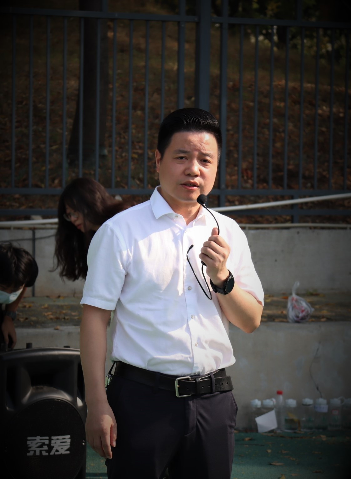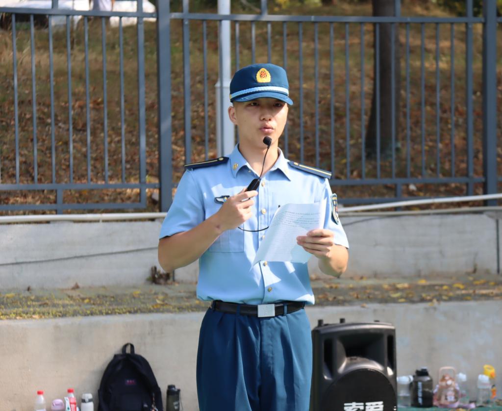 七团团长庄义伟教官发言。他对同学们提出了以下几点要求:一,思想上高度重视,行动上雷厉风行;二,敢于吃苦,勇于磨练,克服娇气傲气;三,严守军训规章制度,服从命令,听从指挥;四,爱护集体,珍惜荣誉,互相学习,共同进步。最后他希望同学们能始终秉持校训精神,通过军训拥有一个完美的蜕变。