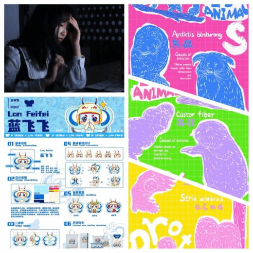 经过艺术设计系老师的评选并综合蓝桥杯获奖结果,本届专业技能大赛共评得一等奖一项、二等奖两项、三等奖九项、优秀奖十项。其中一等奖作品《归巷》(作者:邓智、吴佳融、汪旭)以独特的视频形式展现了在成长过程当中孩子们和家长之间的联系,来表达出亲情的“连接”。二等奖作品《濒危档案》(作者:张金津)采用独特的艺术风格来体现水陆空中的三种濒危动物熊猫、海狸、长尾林鹄与人类的联系,呼吁人们保护自然,进而体现出人类和自然的“连接”;《吉祥物设计-蓝飞飞》(作者:叶桂萍)IP形象设计以蓝桥云课为主题,围绕蝴蝶传播迅速、敏捷的特点重点表达了蓝桥云课的信息传递速度快、稳定性高等优点。