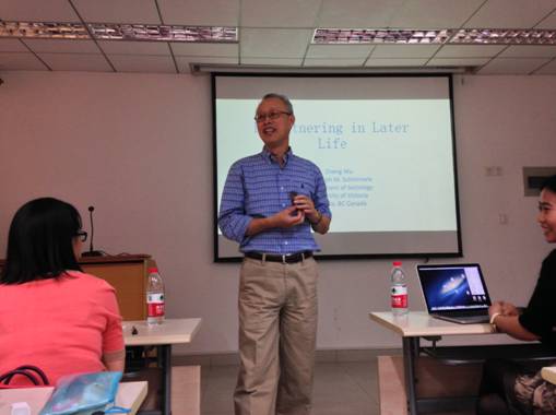 及农村社会建设与管理研究中心盛情邀请,加拿大维多利亚大学社会学系吴正教授莅临我校讲学,于2015年10月16日下午16:00,在人文楼M612为师生带来一场题为“加拿大中老年人重选婚姻与同居伴侣的研究”的学术讲座,校内外十余名教师和近50名研究生到会聆听。