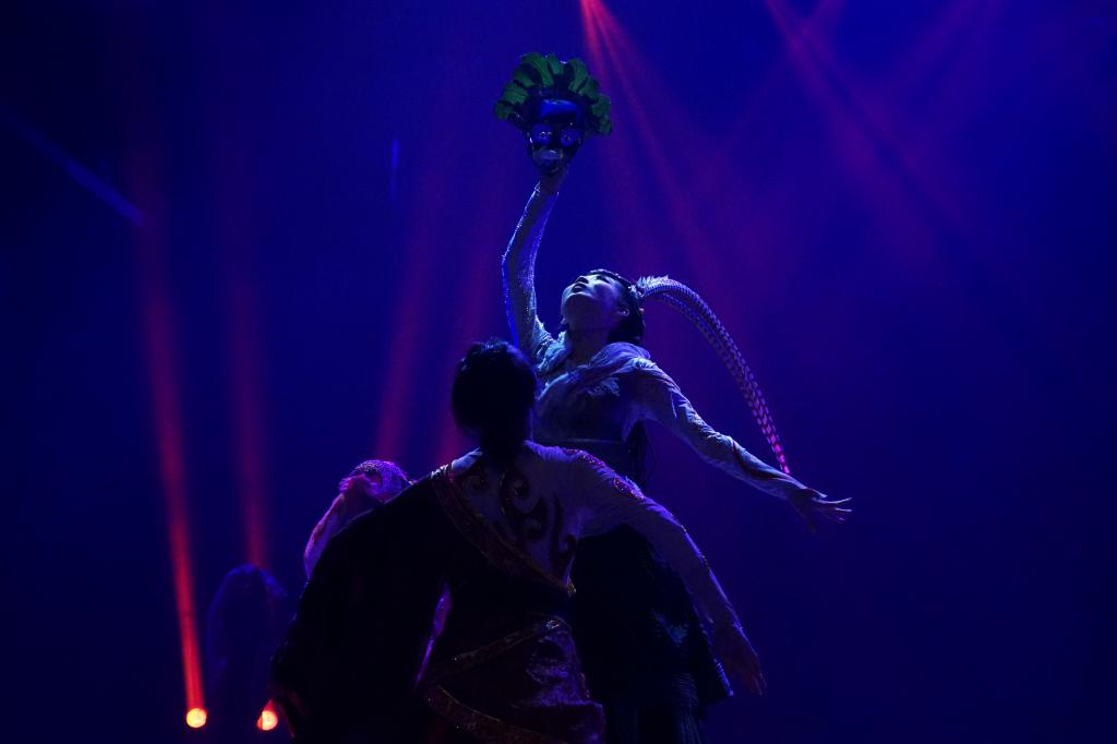 理学院的舞蹈《激楚》,面具是贪欲与悲苦,面具背后是良善之内心,借助楚地文化,理解神灵,呼吁倾听善良的声音。最终以94.83分荣获一等奖。