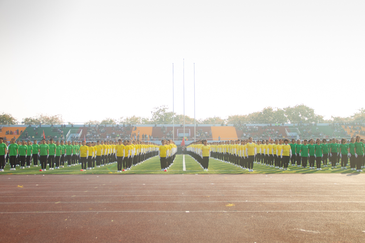 19级新生们进行广播体操项目表演,各学院的新生组成了一道道缤纷的彩带
