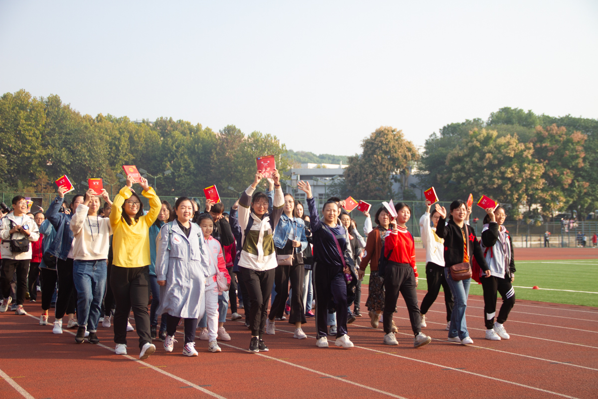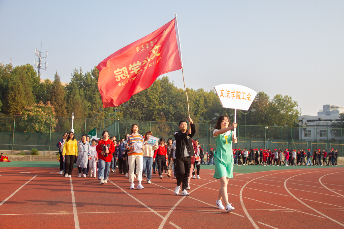 方阵朝前走来,精神饱满,步履从容,文法师生亲切交流、协力并进,愿为这金秋盛会,添一笔文法亮色!