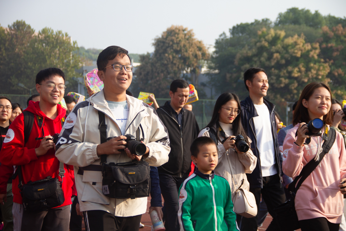 广告学的同学们手持相机参加出场式,他们的自信与昂扬,表露着文法人的青春色彩