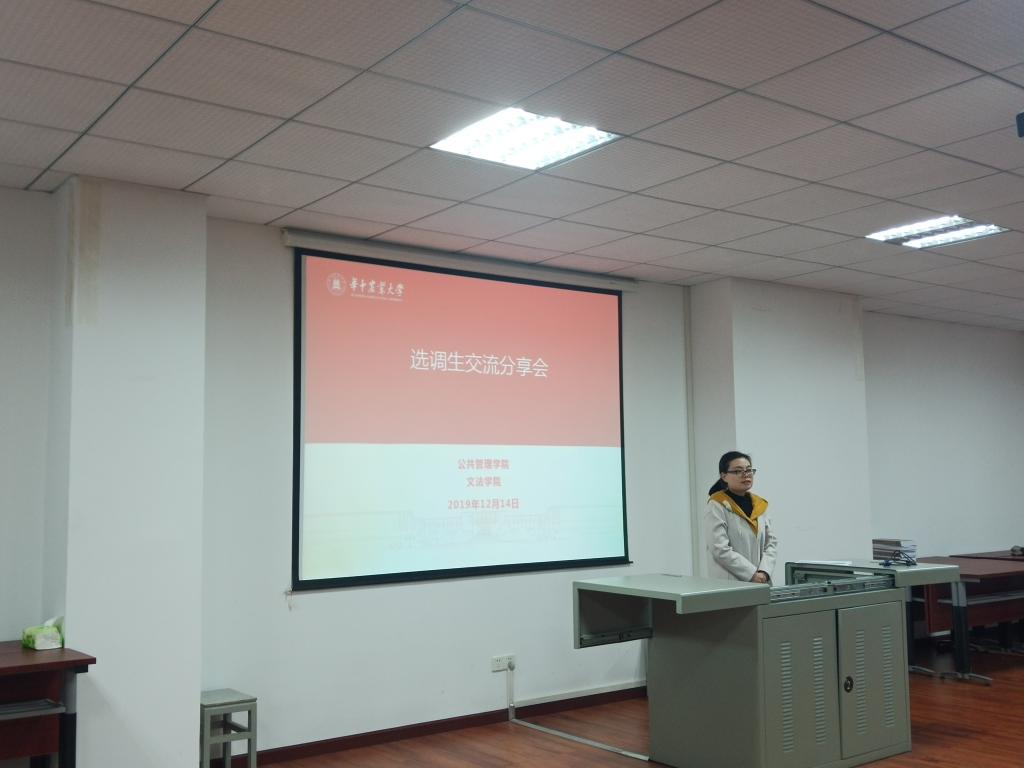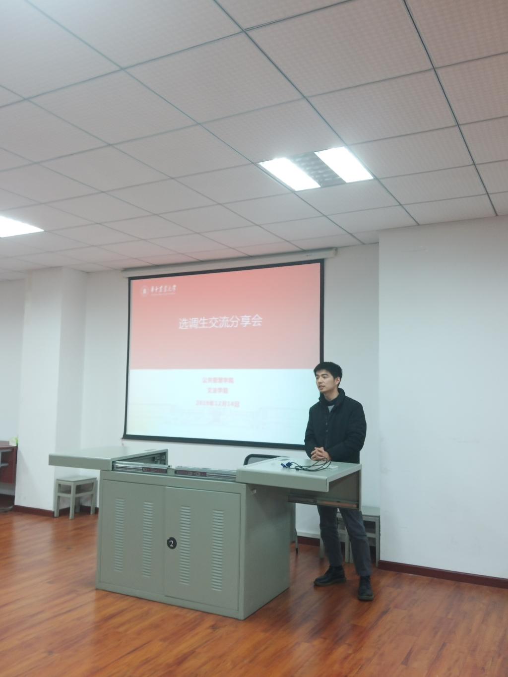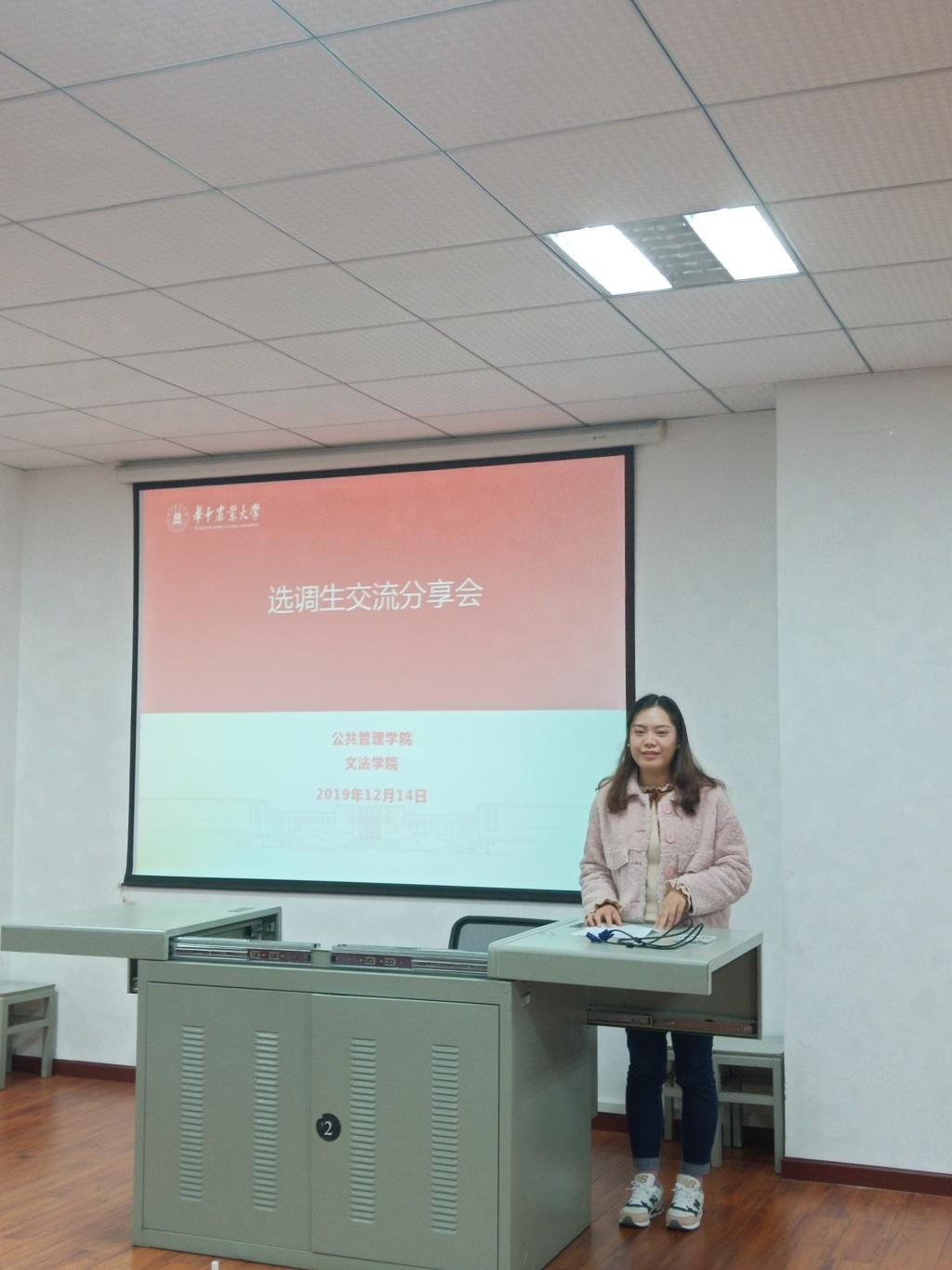 和公共管理学院共同邀请了6位选调生校友在人文楼M221开展了交流分享会,会议由辅导员向克蜜主持。各位嘉宾结合亲身经历,详细介绍了选调生的报名和备考,生动讲述了选调生工作中的体会和收获,并给予在座同学中肯的建议和期望。