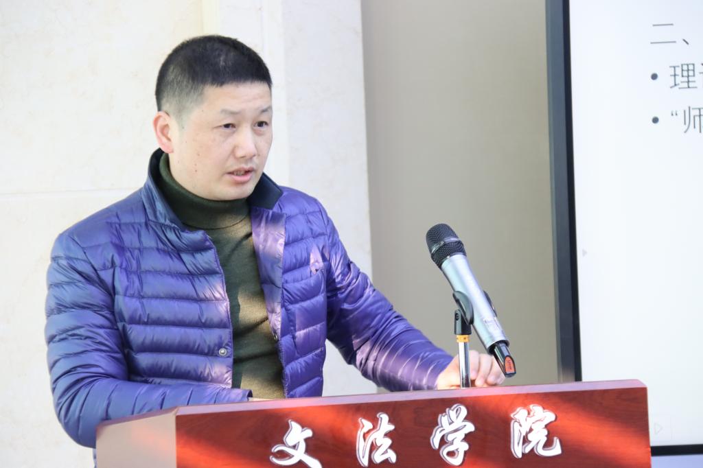 法学系教工党支部书记万志前以“牢记初心使命,力促党建与业务融合”为主题进行汇报,阐述履职尽责,支部学习、支部服务以及支部支持学科发展情况等。支部以《民法典》学习宣讲为契机,将党建与业务融合,开展具有法学特色的系列支部活动。