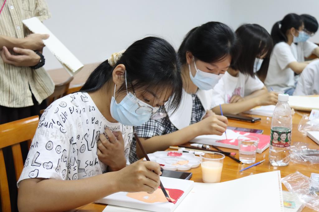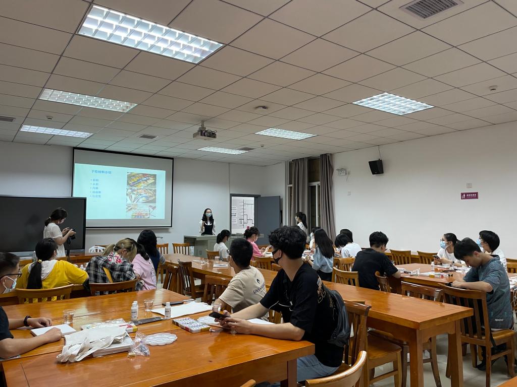 活动伊始,学院视觉传达设计系教师杜静怡向同学们介绍了绘画常用的颜料以及简单的绘画技巧,带领同学们认识手中的手绘用具和材料,帮助不太熟悉手绘方法的同学熟悉手绘的方法。