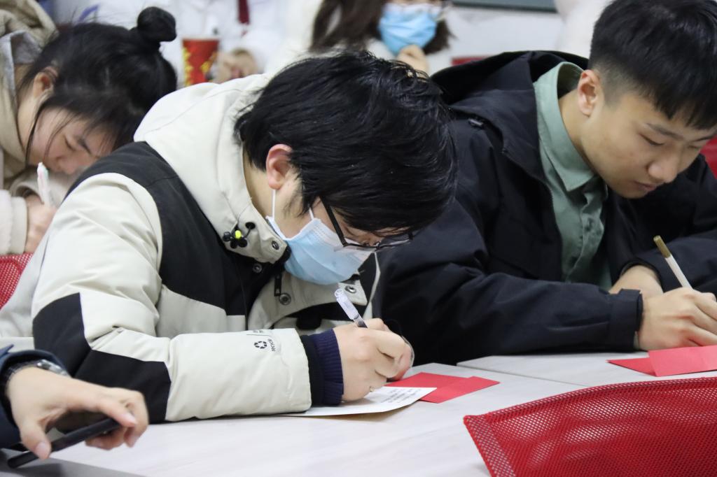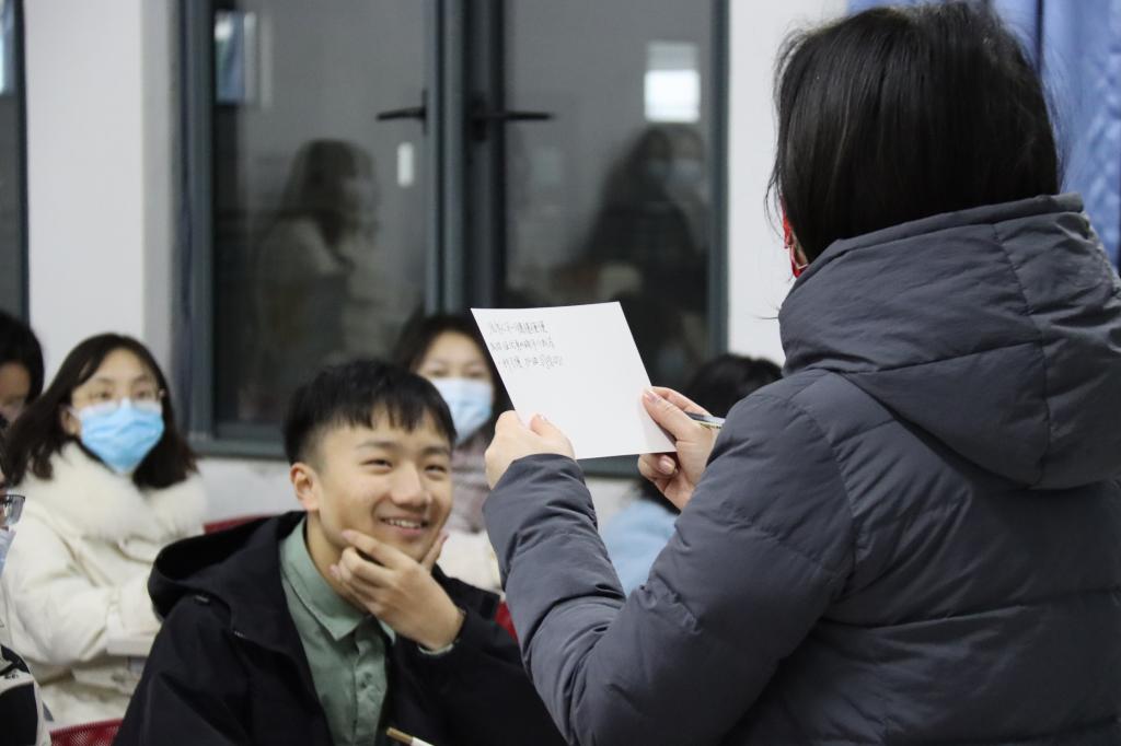 班会开始,学院给每一名同学准备了新年贺卡,代表着学院送给同学们的祝福,同学们纷纷在贺卡上写下了自己新年的祝福与心愿。