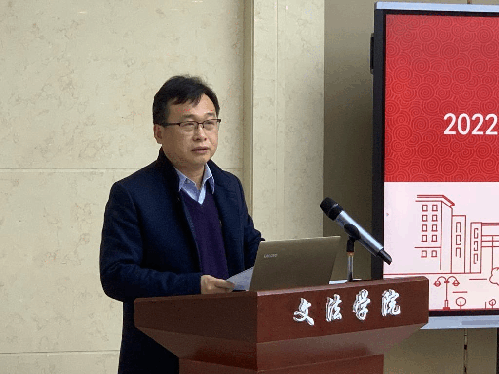 法学系教工党支部书记万志前总结了支部成员扎实推进“我为师生办实事”,组织学生参加读书会,举办学术午餐交流,义务辅导学生法考,为学校孵化器小企业进行普法,与法协联合举办义务法律咨询,下沉社区参与抗疫等工作。