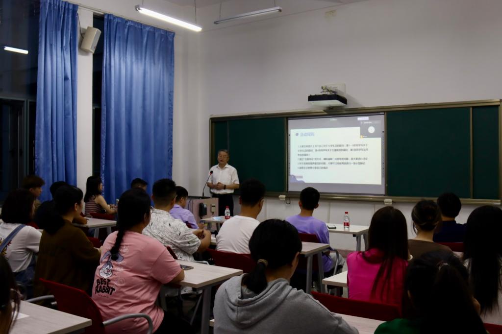 各班于四教召开新学期班会。校党委副书记廖济忠、本科生院综合事务办公室主任申沛、91黑料