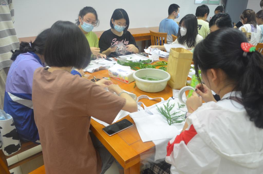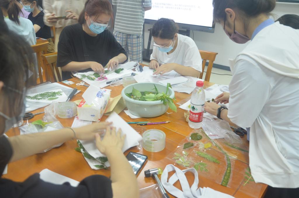 在艺术馆A102举行了“定格华农,荒野寻趣”野趣·狮山印象——植物拓染活动,高尚桢老师在活动现场带领新生同学们一同感受植物拓染的艺术。