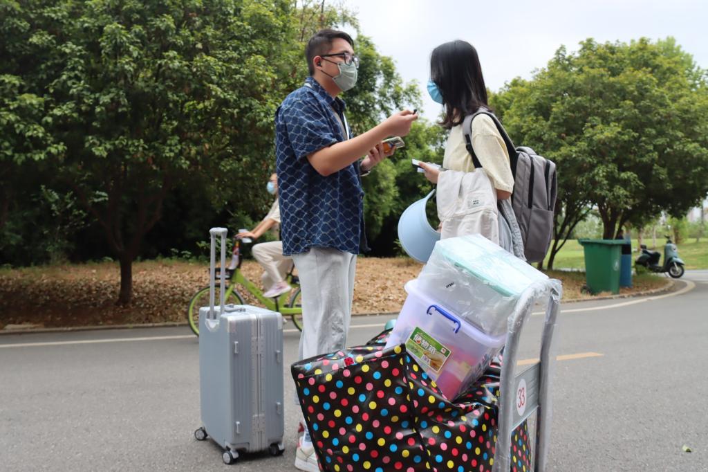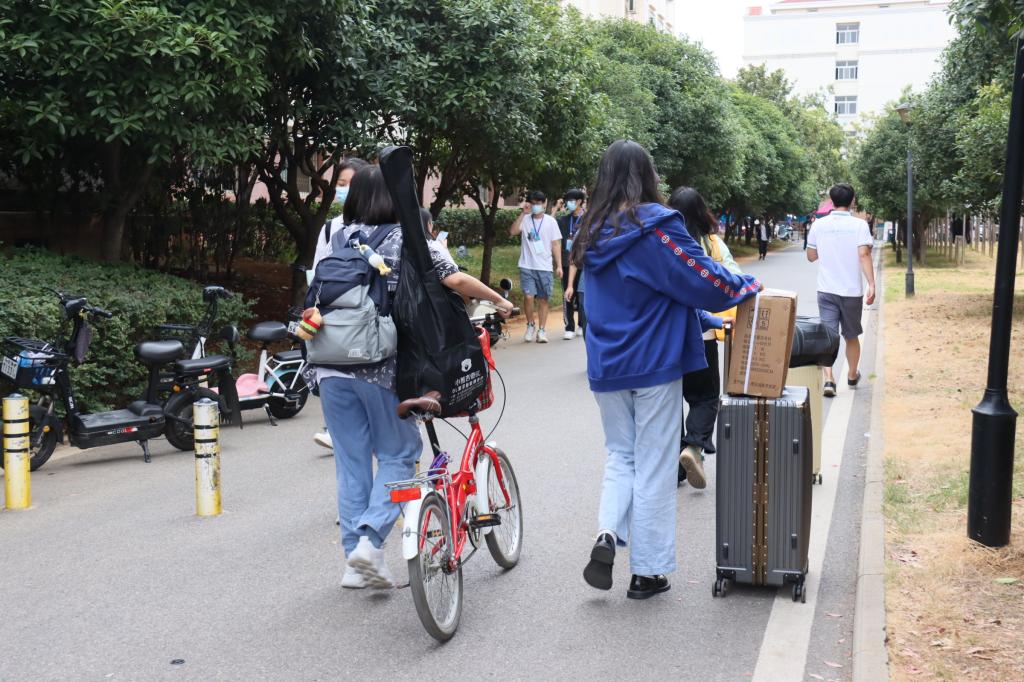 的志愿者一直等候在下车点附近。每一辆满载新生的大巴车驶来时,车窗内那一双双既兴奋又胆怯的眼,便是志愿者们挥洒汗水的动力。“接过你的行囊,我们就是一家人。”等待许久的志愿者会在新生们下车的第一时间接过他们的行李,将他们送到寝室。