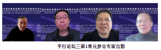 平行论坛1以“中国式现代化进程中的城乡融合发展”为主题,分为两个单元,共有来自国内知名高校、科研机构的10位学者做学术报告。第一单元中,中国社会学会副会长、厦门大学社会与人类学院胡荣教授对中国式城市化进程中农村居民的社会比较与风险感知进行了系统分析,从社会比较的角度揭示了农村居民风险感知的影响机制。中国社会学学会发展社会学专业委员会副理事长、北京大学社会学系主任周飞舟教授从理论和历史实践两方面回顾和考察中国特色城乡关系的发展,分析了当前重视城乡融合发展的历史必然性。《社会学评论》杂志副主编、中国人民大学社会学系王水雄教授结合疫情对经济社会产生的影响,从城乡融合发展的多维时空、融合过程中的时空矛盾、时空协调的基础逻辑和城乡融合的时空协调机制与实例等层面,深入分析了城乡融合发展中的时空协调问题。中南大学公共管理学院潘泽泉教授借鉴跨学科范式,跳出城乡二元对立概念,从空间视角提出了城乡关系与三农发展的认识论变革、政策体系重构和制度体系构建方面的观点。