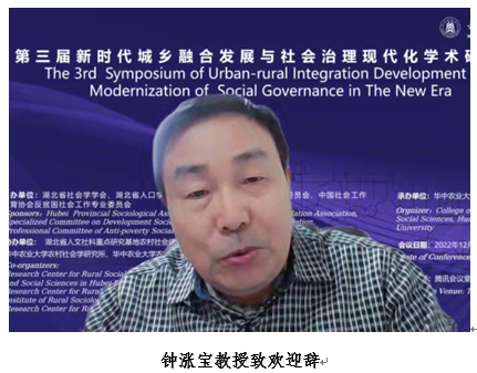 农村社会建设与管理研究中心主任钟涨宝教授致辞。