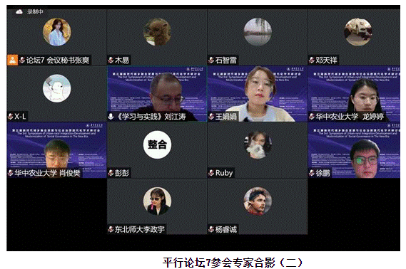 平行论坛5的主题为构建共建共治共享的社会治理共同体,共分3个单元,16位来自国内外高校、科研机构的专家、学者展示了最新研究成果。在第一单元中,中国社会学会副会长、浙江大学社会学系毛丹教授梳理了新中国建国初期社会组织体系的形构和演变,探讨了国家治理的组织基础,从社会组织的角度揭示了国家与社会的关系。中国社会学会副会长、兰州大学哲学社会学院陈文江教授在我国“全民防疫”这一背景下出现的基层社会治理问题出发,深刻讨论了我国新时代基层社会治理中必须坚持的基本原则。武汉大学社会学院院长贺雪峰教授从村庄公共品的内生供给和外生供给角度出发,分析了资源下乡过程中的公共品外生供给问题并探讨了村庄公共品供给从外生变内生的可能性。中国人民大学社会与人口学院副院长黄家亮副教授以冀县的“千分制”个案研究为基础,讨论了村级治理正式化与村干部行动逻辑,揭示了基层治理中存在的悖论、行政与自治之间存在的张力。