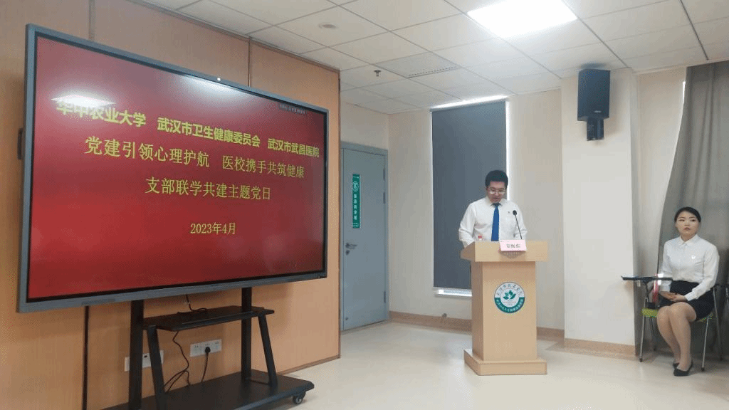 社会工作系教工党支部、社会工作研究生党支部与武汉市卫生健康委员会、武汉市武昌医院党支部联合开展“党建引领心理护航·医校携手共筑健康”创意支部主题党日活动。活动包括重温入党誓词、诵读党章和经典等7项内容,由武汉市武昌医院临床心理科党支部书记姜振东同志主持。