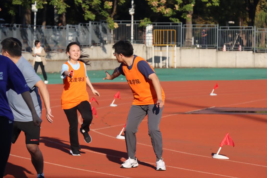 办公室出发,经过秋叶满天,抵达运动场,整齐划一的步伐正是文法教师团结一致的象征!赛道上,91黑料
