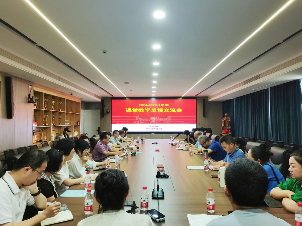 2024-2025-1学期“开学第一课”教学反馈交流会在人文附楼A301会议室举行。校党委副书记、纪委书记廖济忠,校文化建设办公室主任冯楠、教学运行管理处处长肖湘平、学院党委书记瞿明勇、院班子成员、系(部)主任、基层教学组织负责人以及授课老师等参与了本次反馈交流会。瞿明勇主持会议。