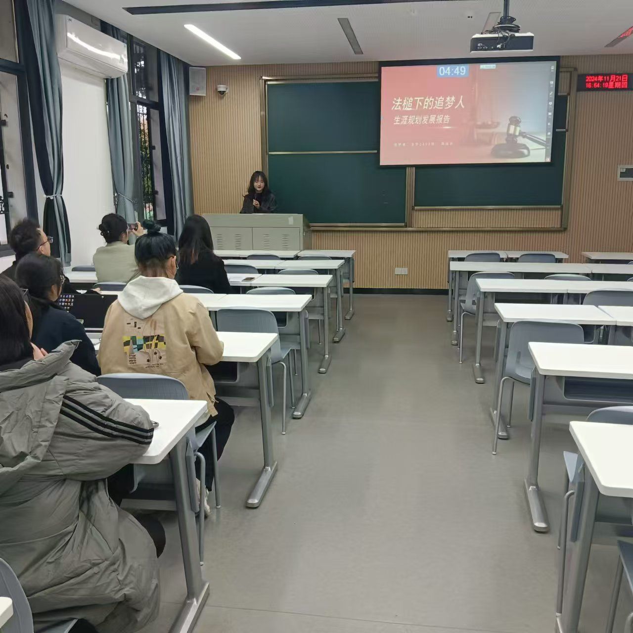 共有21名同学报名参加本次比赛的角逐,过程中,青年同学积极展示自己的才华与志向,有法槌下的追梦者,有致力于乡村传播的广告人,有致力于基层治理的社工,也有丰富实践经历的媒体人,同学们凭借深入的职业分析、创新的规划策略及精彩的现场展示脱颖而出,展现了当代青年的卓越风采与远大抱负。