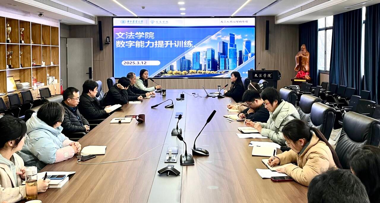 在人文社科楼附楼A301会议室举办“智能办公加速器:DEEPSEEK+X”专题培训。本次培训特邀信息学院副院长沈婧芳教授担任主讲,学院行政教工和各系教师代表参加了培训。