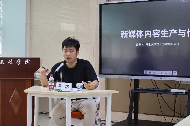 “视频创意与解析”讲座内容新颖,邦盟孚图品牌营销策划有限公司总经理段丹结合职业生涯中接触到的影视题材,为同学梳理视频创作的经验与技巧。深入剖析了视频创意的构思、制作与传播过程,并就视频拍摄的镜头语言、脚本创作问题为同学们答疑,受到同学们的广泛好评。最后,“新媒体内容生产与传播”讲座总结了新媒体时代内容生产与传播的新趋势和新挑战,强调了内容质量、用户体验以及技术创新在媒体发展中的关键作用。湖北长江垄上传媒集团数字业务中心主任黄鹏勉励同学们要善于观察总结、专注对待新闻、勤于分析思考、养成收藏习惯。