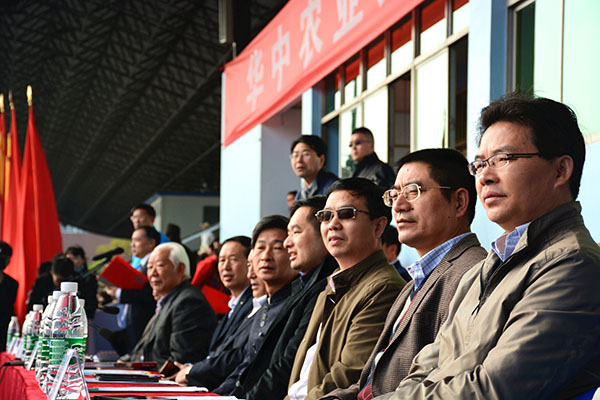 舞龙舞狮表演后的武术表演也是气势十足,振奋人心。团体操更是成了整个开幕式的一大亮点,江南style,ppap和鬼步舞等的结合改编既有趣又洋溢出青春的活力,正如广播词里的形容“青春最美丽,运动最精神”。广播操表演整齐划一,方阵横平竖直。随后,是代表各学院,各工会等的方阵入场。国旗班庄严的步伐,仿佛诉说了华农走在教育战线的最前列。校医院,保卫处,后勤集团等也参与了开场。