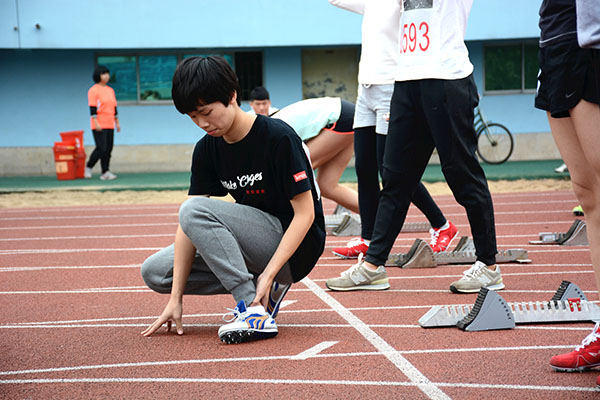 此外,她表示她对经管院参与比赛的选手比较关心,因为听说今年体育特长生很多,实力很强。她还谦虚的称她是个半吊子,难免有些心虚。谈到平时是怎么巩固自己的水平的时候,她说平时主要还是靠打球。因为是院女篮队长,然后还在校队里打球,每天运动量都很大。并没有刻意练习跑步的情况下保持着这种爆发力和身体素质也是让人非常羡慕了。面对比较官方的秉持着什么运动精神的问题,学长笑称是坚持,除了坚持还是坚持。关于我们问到的运动方面的建议给那些想参加又不自信的同学们,她告诉我们,其实不仅是运动方面,做任何事建议还是要看兴趣和性格,真正喜欢一项事情的人不会找其他借口,更不会结果主义,喜欢就去做。