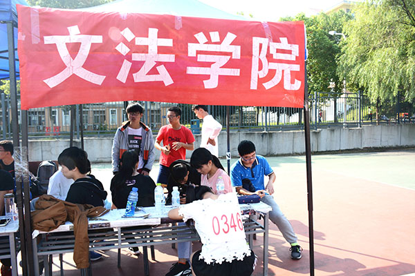 在运动员的选择方面,体育部做的工作是一一发短信通知并组织进行选拔,反复确认保证通知到位。据悉今年选拔时不仅天气寒冷,有一天晚上还下起了雨。在赛场上,体育部的同学们负责后勤工作,常驻文法帐篷中,可以说是大本营的中坚力量了。