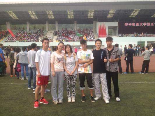 的运动员。这一项比赛是要每个学院派出两男两女4名运动组成一支队伍,每个选手都必须要完成50米运篮球跑、原地踢毽子5次、50米用乒乓球拍托网球跑这三个小项目。比赛时稍有不慎,就会在交接棒、踢毽子、运球等环节出差错。与普通的接力项目相比,花样接力必须要考虑更多因素,要考虑如何减少失误、节约时间,跑起来的时候也更费脑子。正因为如此,它的趣味性和观赏性也更强了。“我们要尽量避免失误,交接棒要干脆迅速,也得考虑踢毽子时万一风太大把毽子吹跑了的情况……”这是我们院体育部负责训练我们的同学经常强调的问题。