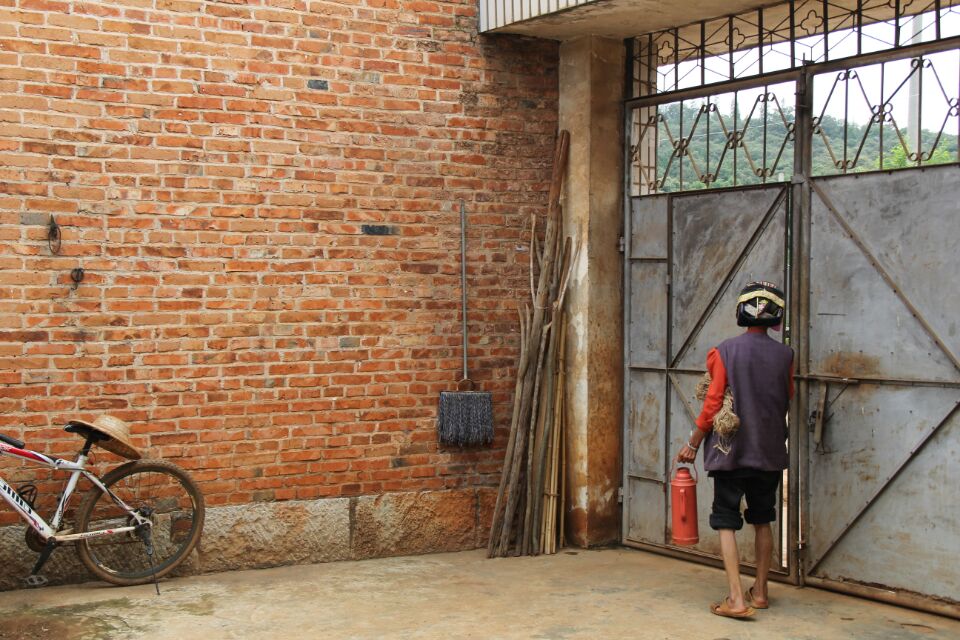 在村口我们与老人偶遇,王玉芳老人今年已75岁高龄,身体精瘦。初次见面的她,提着暖水瓶,着拖鞋,脚已被土色染黄,宽大的裤脚让小腿显得更瘦。