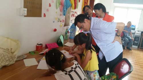 在杨飞的陪同下,唐峻一行考察了王家河社区和彭岗村两个服务点内的多功能活动室、健身康复室、书画室、四点半学校、阅览室及心理咨询室等场所。唐峻仔细询问活动开展情况、留守儿童的身心状况、家长的反应等,并同小朋友们“拉家常”。