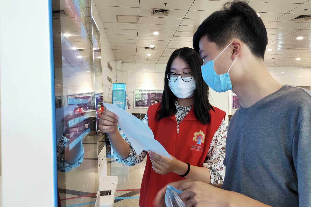 作为组织里少数几名大学生志愿者之一,倪丽娇同学充分展现了年轻人的力量,凭借高中生物知识以及互联网资源,为就诊群众解答各种问题,例如“如何查看化验结果”、“胃疼应该挂什么门诊”等等。她以“训练有素”的作风和“和气宽容”的态度,帮助了许多患者安心就诊。