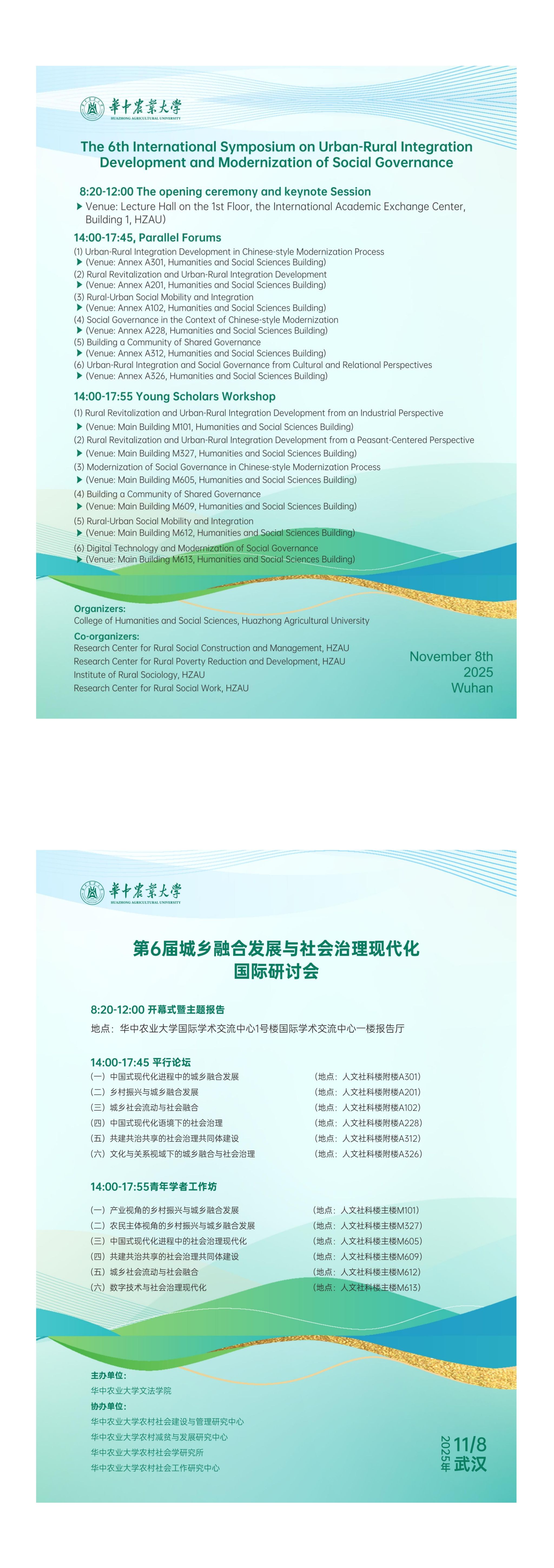 上一条:Handbook of the 6th International Symposium of Urban-Rural Integration Development and Modernization of Social Governance