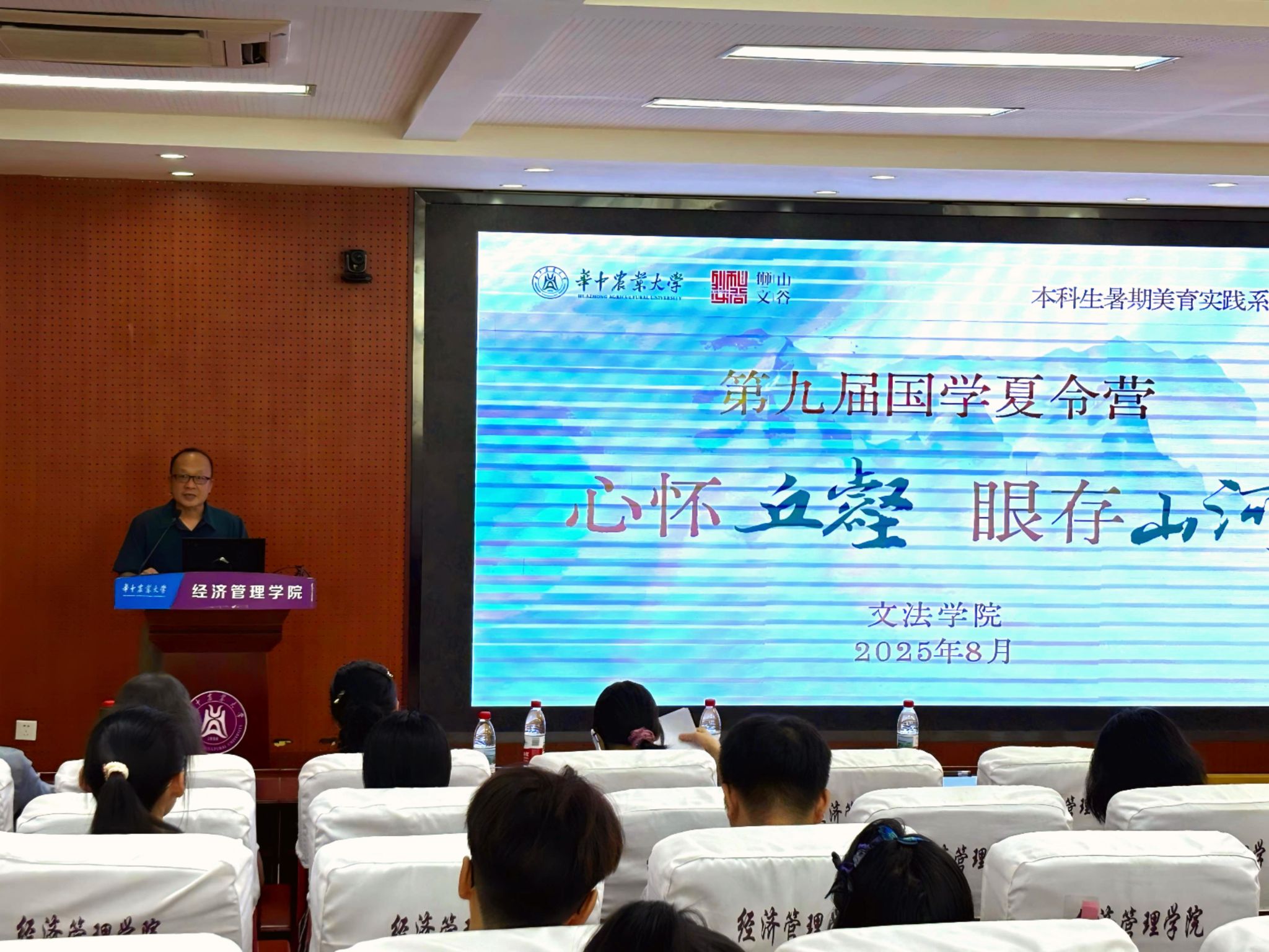 党委书记刘广乐表示,在技术飞速变革的时代,心灵滋养更显珍贵,而国学正是润泽心灵、安顿生命的源泉。他强调,国学不仅是知识的传承,更是中华文明的精神土壤与文化根本。对此,他向营员提出三点期许:一要“勤读”,诵经典、广视野、养气质,真正做到“腹有诗书气自华”;二要“力耕”,践行“知行合一”,在美育实践中体会传统之美;三要“达人”,胸怀家国,心系社会,以“横渠四句”与华农校训“勤读力耕,立己达人”共勉,力求修己以安人、服务国家、贡献时代。