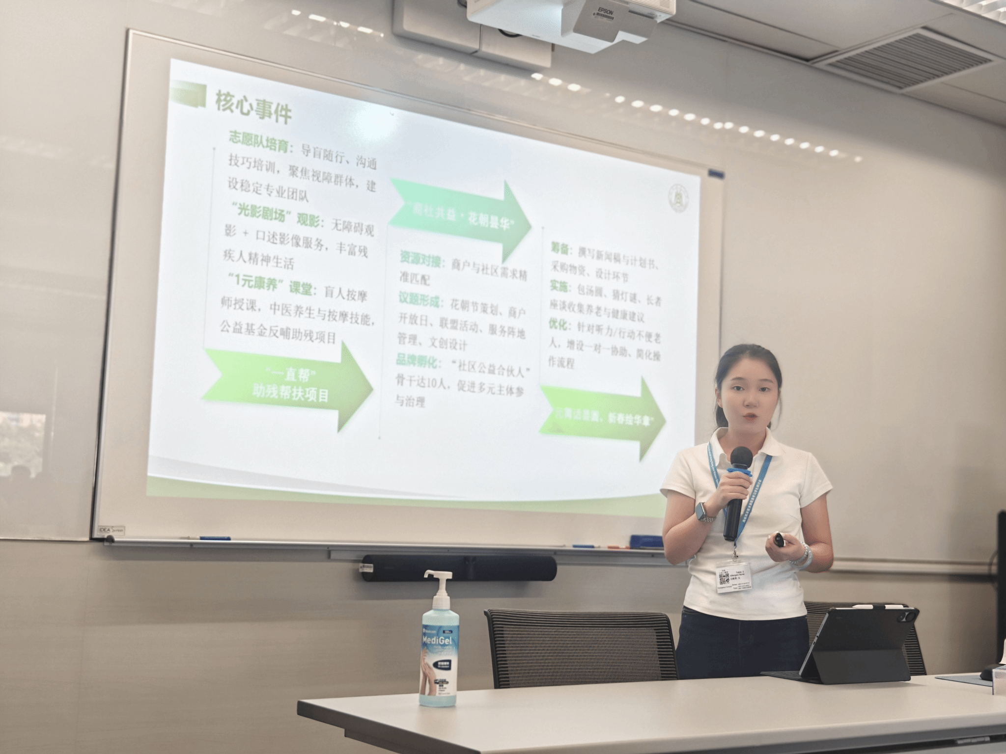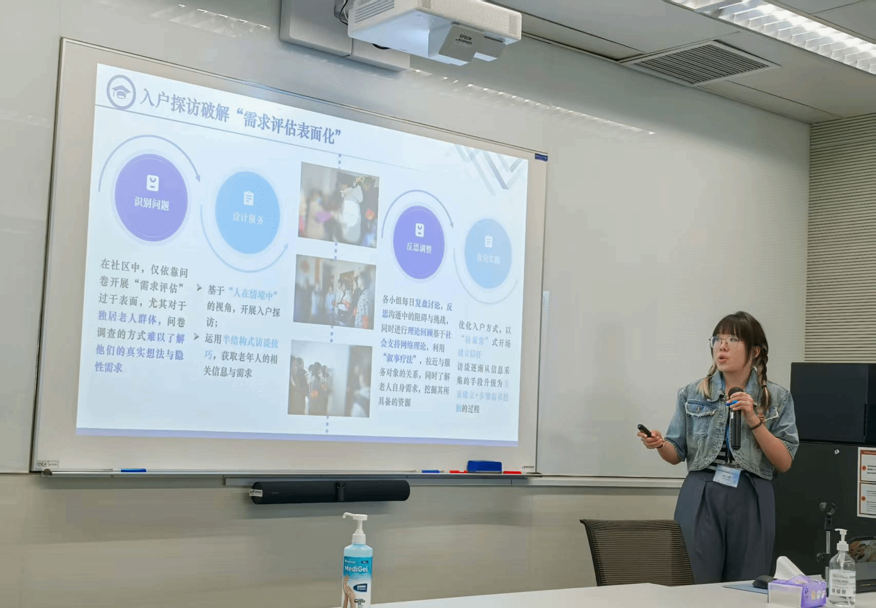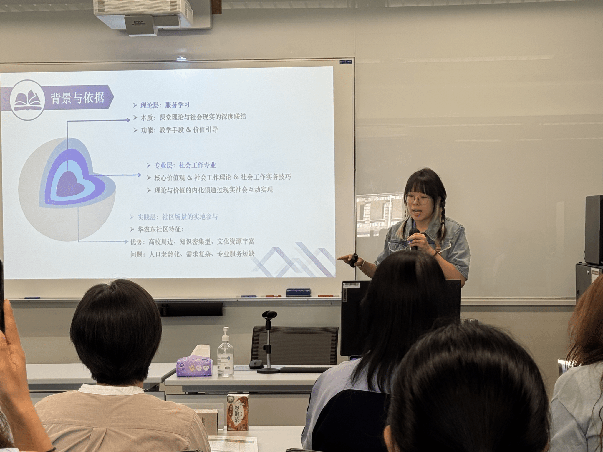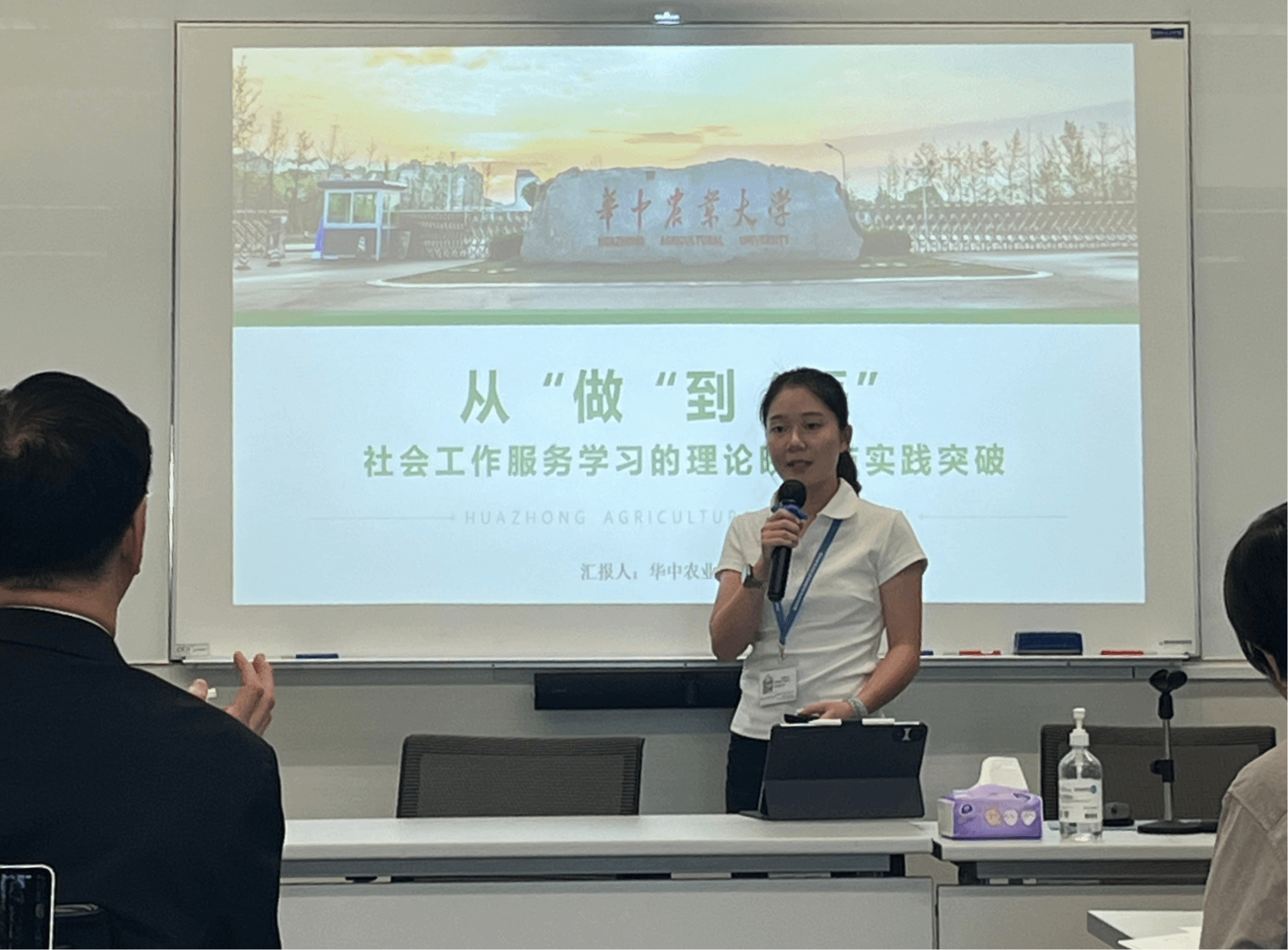东社区的服务学习项目为例,系统阐述了该项目的回应的问题、实施过程、社会影响以及自我反思。她的汇报《学以致用,行中致思:服务学习的影响与反思》荣获服务学习个人汇报金奖。王喆同学则基于在粮道街街道社工站的实践,做了《从“做”到“悟”:社会工作服务学习的理论映照与实践突破》的回报,分享如何将理论融入现实服务,实现专业能力与个人素养的双重提升,并获得服务学习成果荣誉奖。